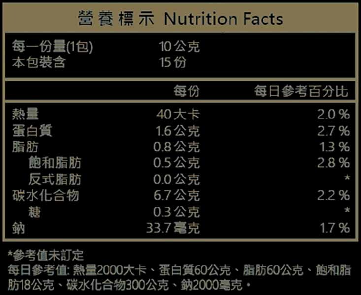 保存方式:請置於陰涼乾燥、避免陽光直射之處,開封後請儘早食用完畢避免受潮。