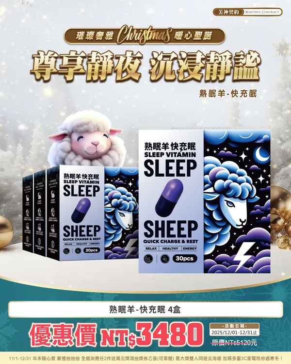 成分:麩胺酸發酵物(非基改玉米澱粉、麩胺酸發酵物(含r-aminobutyric acid,GABA)、乳酸菌)、專利米糠萃取物(含γ-穀維素)、L-色胺酸、BIFIZEN®綜合乳酸菌(麥芽糊精、B. longum 04 、L. fermentum LF16 、L. plantarum LP01、L. rhamnosus LR06 )、專利番紅花萃取物、芝麻萃取物、專利黑胡椒萃取物(黑胡椒萃取物、玉米澱粉、特級冷壓橄欖油、維生素E)(含ß-石竹烯)、維生素E、硬脂酸鎂。