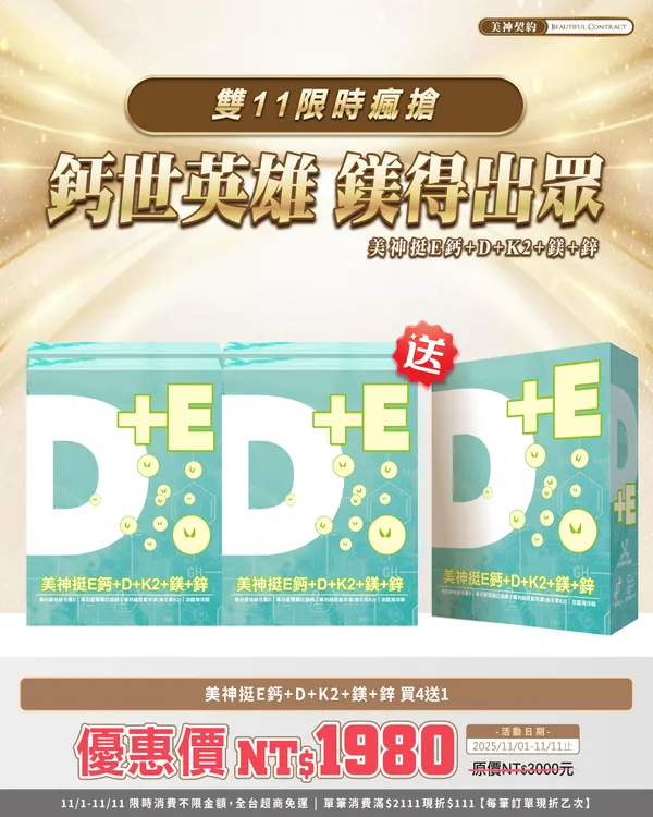 《買4送1》美神挺E鈣+D+K2+鎂+鋅